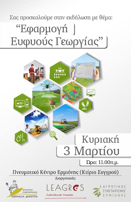 Η Λέαγκρος σε συνεργασία με τον Αγροτικό Συνεταιρισμό Θερμασία-Δήμητρα και τον Αγροτικό Συνεταιρισμό Ερμιόνης διοργανώνουν ενημερωτική ημερίδα για τις Εφαρμογές Ευφυούς Γεωργίας.