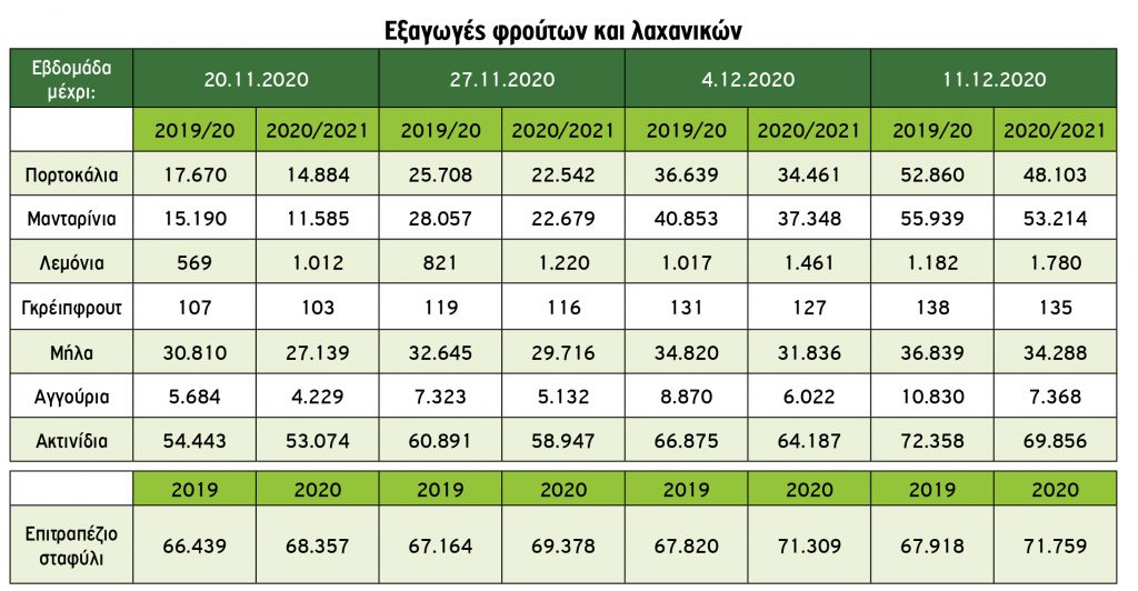 Επισημαίνεται ακόμη ότι: «επαναλαμβάνουμε την έκκλησή μας όπως η πολιτεία μεριμνήσει για την απρόσκοπτη διακίνηση των έμφορτων με φρούτα και λαχανικά φορτηγών αυτοκινήτων διεθνών μεταφορών στα χερσαία σύνορα της χώρας αλλά και στην επιστροφή τους κενών προς επαναφόρτωσή τους με την ενεργοποίηση των πράσινων λωρίδων διακίνησής τους κατ’ εξαίρεση στους προβλεπόμενους ελέγχους στα σύνορα ως ίσχυσαν στο πρώτο lockdown. Να ληφθούν μέτρα αντιμετώπισης κρίσεως στον τομέα των οπωροκηπευτικών (προληπτική απόσυρση κ.α) που ήδη στην Ισπανία λήφθηκαν μέτρα για αγγούρια αλλά και έγκριση μέτρων παρεμφερών με αυτά του πρώτου lockdown για στήριξη του εισοδήματος της παραγωγής που τυχόν θα πληγεί».