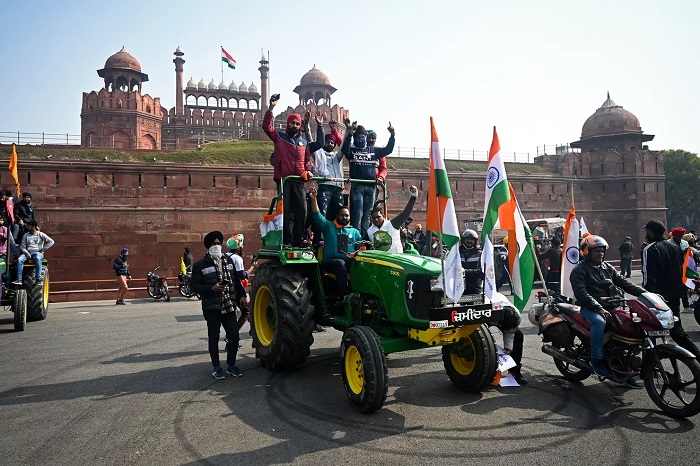 Ωστόσο, κομβόι από τρακτέρ, φορτωμένα με αγρότες, κατάφεραν να σπάσουν τα φράγματα και να μπουν στις κεντρικές αρτηρίες της πόλης. Στο παλιό Κόκκινο Φρούριο, που χτίστηκε πριν από 400 χρόνια, οι διαδηλωτές ύψωσαν τα λάβαρα του κινήματός τους εκεί όπου συνήθως κυματίζει η ινδική σημαία.