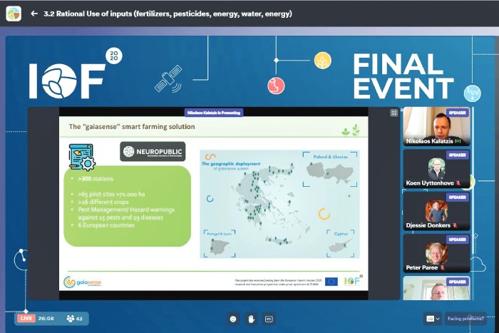 Με αφορμή, λοιπόν, την επιτυχημένη ολοκλήρωση του έργου ΙoF2020 πραγματοποιήθηκε ένα τριήμερο διαδικτυακό συνέδριο (16/3/2021 έως 19/3/2021) στο οποίο έδωσαν το παρών εκπρόσωποι από όλο αυτό το οικοσύστημα, όπως αναφέρει ο κ. Καλατζής. Κατά τη διάρκεια του συνεδρίου, έγιναν παρουσιάσεις, εργαστήρια, επιδείξεις, συζητήσεις, καθώς και δράσεις δικτύωσης σε σχέση πάντα με τις προκλήσεις που αντιμετωπίζει ο γεωργικός τομέας στην προσπάθεια βελτιστοποίησης των εφαρμοζόμενων πρακτικών.