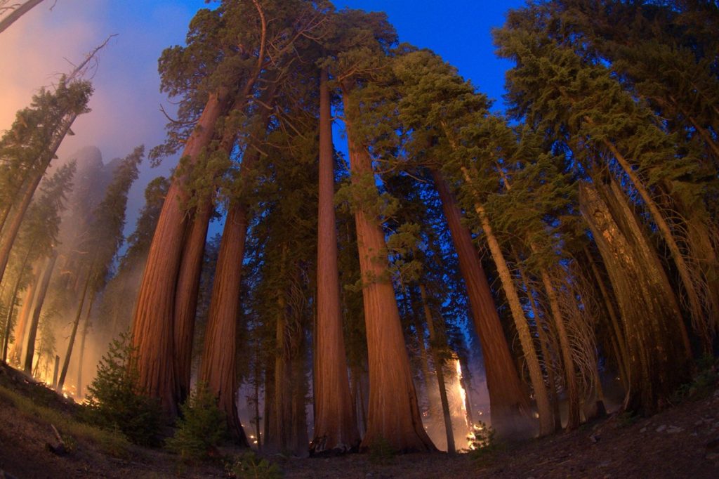 Οι φωτιές μέτριας έντασης γενικά δεν είναι ικανές να καταστρέψουν τις γιγαντιαίες σεκόγιες, που έχουν προσαρμοστεί σε αυτού του είδους τις καταστροφές και προστατεύονται από τον χοντρό φλοιό τους και από το γεγονός ότι τα πρώτα κλαδιά τους μπορεί να βρίσκονται σε ύψος τριάντα μέτρων, εκεί που δεν τα φτάνουν οι φλόγες. Αντιθέτως, οι σεκόγιες χρειάζονται τις φωτιές για να αναπαραχθούν: από τη ζέστη σκάνε τα κουκουνάρια τους και πέφτουν στο έδαφος σαν ποπ-κορν, απελευθερώνοντας εκατοντάδες σπόρους. Όμως οι γίγαντες αυτοί, που φυτρώνουν μόνο στην Καλιφόρνια, δεν μπορούν να αντισταθούν σε πυρκαγιές μεγαλύτερης έντασης, όπως αυτές που εκδηλώνονται τα τελευταία χρόνια, λόγω της κλιματικής αλλαγής. Τον Σεπτέμβριο του 2021, ενώ οι πυρκαγιές μαίνονταν στην περιοχή, οι διασώστες τύλιξαν με πυρίμαχες κουβέρτες τις γιγαντιαίες σεκόγιες, μεταξύ των οποίων και τον «Στρατηγό Σέρμαν», ένα από τα ψηλότερα δέντρα του κόσμου, με ύψος 83 μέτρων.