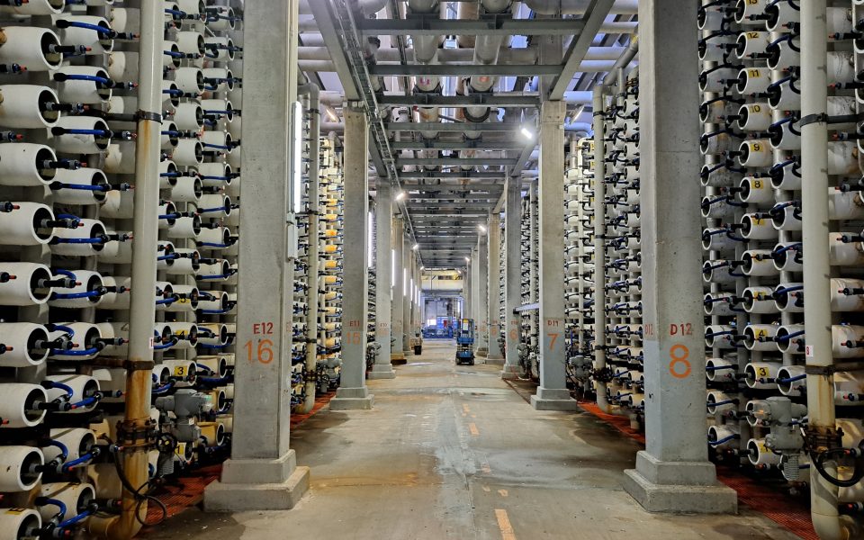 Πώς λειτουργούν όμως αυτές οι μεγάλες μονάδες αφαλάτωσης; Η επίσκεψη στη μονάδα της Χαντέρα (η οποία εξυπηρετεί περίπου 1,2 εκατ. πολίτες) δίνει την ευκαιρία να απαντηθούν αρκετές απορίες. «Το θαλασσινό νερό στην περιοχή μας έχει υψηλή αλατότητα, περίπου 40.000ppm (μέρη διαλυμένων αλάτων ανά εκατομμύριο), και μέσω της μονάδας γίνεται 240 ppm», εξηγεί η Μίριαμ Mπρουσιλόβσκι, τεχνική διευθύντρια της IDE (εταιρείας που διαχειρίζεται τρεις από τις πέντε μονάδες αφαλάτωσης της χώρας). «Το νερό έρχεται στη μονάδα μέσω τριών αγωγών, μήκους 1,25 χλμ., από βάθος 15 μέτρων. Η απορρόφηση είναι αργή, περίπου 45.000 m3/ώρα (περίπου μία πισίνα το λεπτό), ώστε να μην απορροφώνται ψάρια. Κατόπιν υφίσταται δύο στάδια προεπεξεργασίας που απομακρύνουν κάθε σωματίδιο. Στη συνέχεια το νερό αφαλατώνεται μέσω αντίστροφης ώσμωσης. Κατά τη διαδικασία αυτή ανακτάται το 45% της ενέργειας που χρειάζεται το εργοστάσιο. Το μισό από το νερό που απορροφάται από τη θάλασσα μετατρέπεται σε πόσιμο, ενώ το άλλο μισό είναι “συμπυκνωμένο”, καθώς έχει το σύνολο του αλατιού. Αυτό επιστρέφεται στη θάλασσα μπροστά στο εργοστάσιο, όπου αναμειγνύεται με το νερό που χρησιμοποιείται για την ψύξη του παρακείμενου εργοστασίου».
