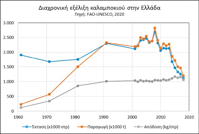 του καλαμποκιού σε σπόρο στην Ελλάδα την περίοδο 1960-2020.