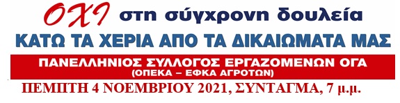 Κάλεσμα στο πανεργατικό συλλαλητήριο την Πέμπτη 4 Νοεμβρίου από τον Π. Σ. Ε. Ο. Γ. Α.