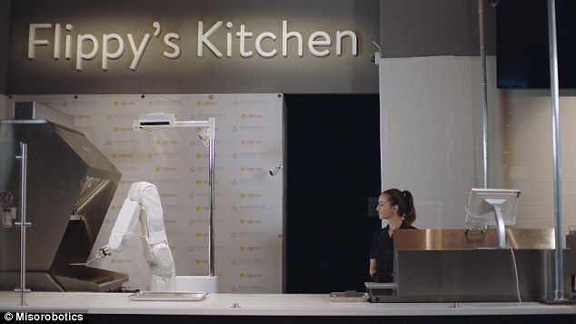 Κι όμως τα μπέργκερ εκεί τα έχει αναλάβει ο Φλίπι, ένα ρομποτικό σύστημα με ένα χέρι, το οποίο τον βοηθά να αναποδογυρίζει τα μπέργκερ πολύ γρήγορα.