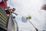 Τα πληρώματα των αρμάτων έριχναν καρότα, λάχανα και λαχανάκια Βρυξελών προς το εφοδιασμένο με καλάθια και δίχτυα πλήθος που περίμενε να… ψαρέψει κάτι από αυτά!