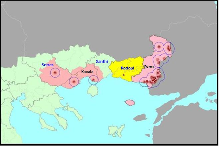 Οριοθετήθηκαν οι ζώνες προστασίας και επιτήρησης που περιλαμβάνουν τις περιοχές σε ακτίνα 3 και 10 χιλιομέτρων αντιστοίχως από τη μολυσμένη εκτροφή (η ζώνη επιτήρησης περιλαμβάνει τη ζώνη προστασίας) και η περαιτέρω απαγορευμένη ζώνη που περιλαμβάνει τους 5 από τους 7 δήμους της Π.Ε. Σερρών, όπως φαίνεται και από το συνημμένο χάρτη για τη δεδομένη χρονική στιγμή (τροποποιούνται οι απαγορευμένες ζώνες ανάλογα με το νόσημα και τις εστίες που εμφανίζονται εκάστοτε στη χώρα μας βάση πρόσφατου εγγράφου του ΥπΑΑΤ) και εφαρμόζονται τα προβλεπόμενα από τη νομοθεσία μέτρα.