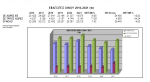 Τα αντίστοιχα μεγέθη, παρουσιάζουν άνοδο επίσης σε επίπεδο μέσου όρου πενταετίας, σε αξία, η οποία ανέρχεται σε ποσοστό 10,51%, ενώ μείωση παρουσιάζει του 2021 όσον αφορά τις ποσότητες η σύγκριση με τον Μ.Ο. 5ετίας, σε ποσοστό -4,83%.