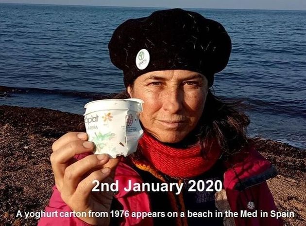 Η εταιρεία γιαουρτιών Yoplait δεν κυκλοφορεί πλέον προϊόντα στην Ισπανία από το 2001. Και, όμως, η περιβαλλοντολόγος βρήκε ένα πλαστικό κεσέ της μάρκας στην παραλία Ντένια, στην Κόστα Μπλάνκα, ληγμένο από το 1976. Το πλαστικό το περίβλημα είναι – 44 χρόνια μετρά – σε άριστη κατάσταση. Η Μομπό κάνει έκκληση για να αποκτήσουν πλέον οι πολίτες περιβαλλοντική συνείδηση.