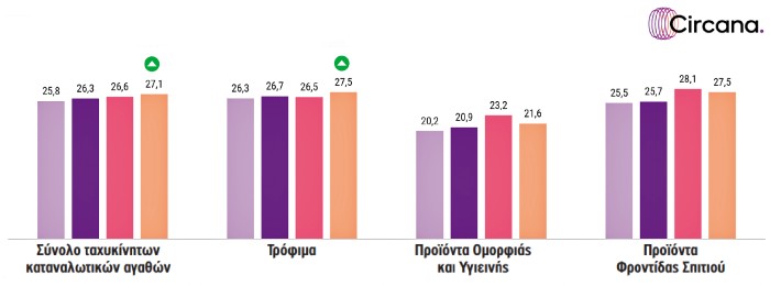 Όλα αυτά τη στιγμή που η προωθητική ένταση στο σύνολο της αγοράς παρουσιάζεται αυξημένη κατά 2,5%, με τη μικρότερη διαφοροποίηση ωστόσο (1,9%) να εντοπίζεται στα τρόφιμα, όπου το 27,1% των πωλήσεων πραγματοποιήθηκε υπό καθεστώς κάποιας προωθητικής ενέργειας ή προσφοράς.
