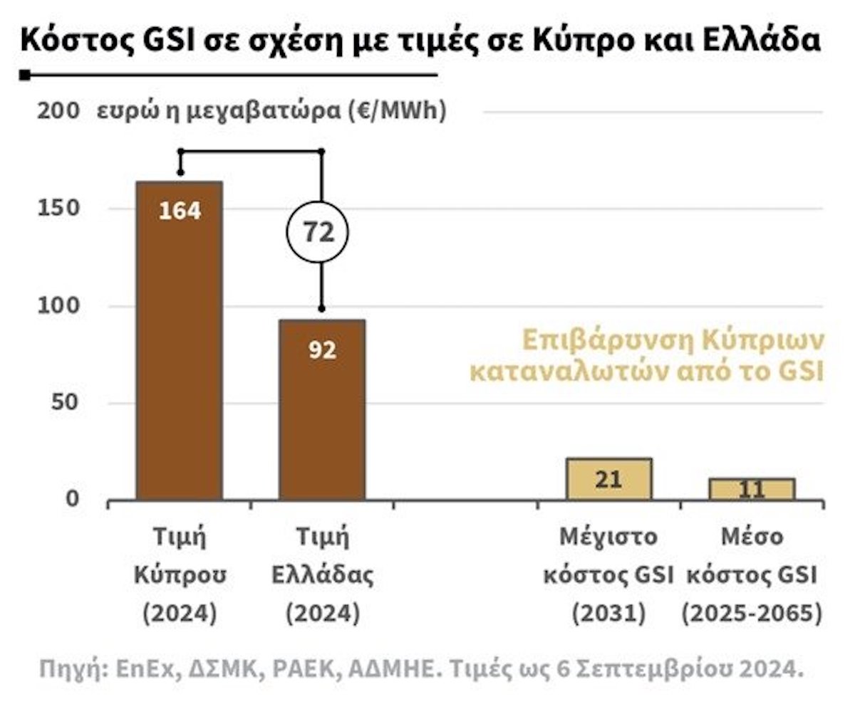 Όπως εξήγησε, με βάση τα στοιχεία της μελέτης και του μοντέλου του ΑΔΜΗΕ και τα δημόσια διαθέσιμα στοιχεία για τη λειτουργία των δύο αγορών, οι διαφορές τιμών μεταξύ Ελλάδας – Κύπρου είναι τόσο μεγάλες (ακριβότερη κατά 72 ευρώ η κυπριακή αγορά από την ελληνική το 2024), που σε όλα τα πιθανώς ρεαλιστικά σενάρια το καλώδιο έχει σημαντικά κέρδη από πλευράς Κυπρίων καταναλωτών.