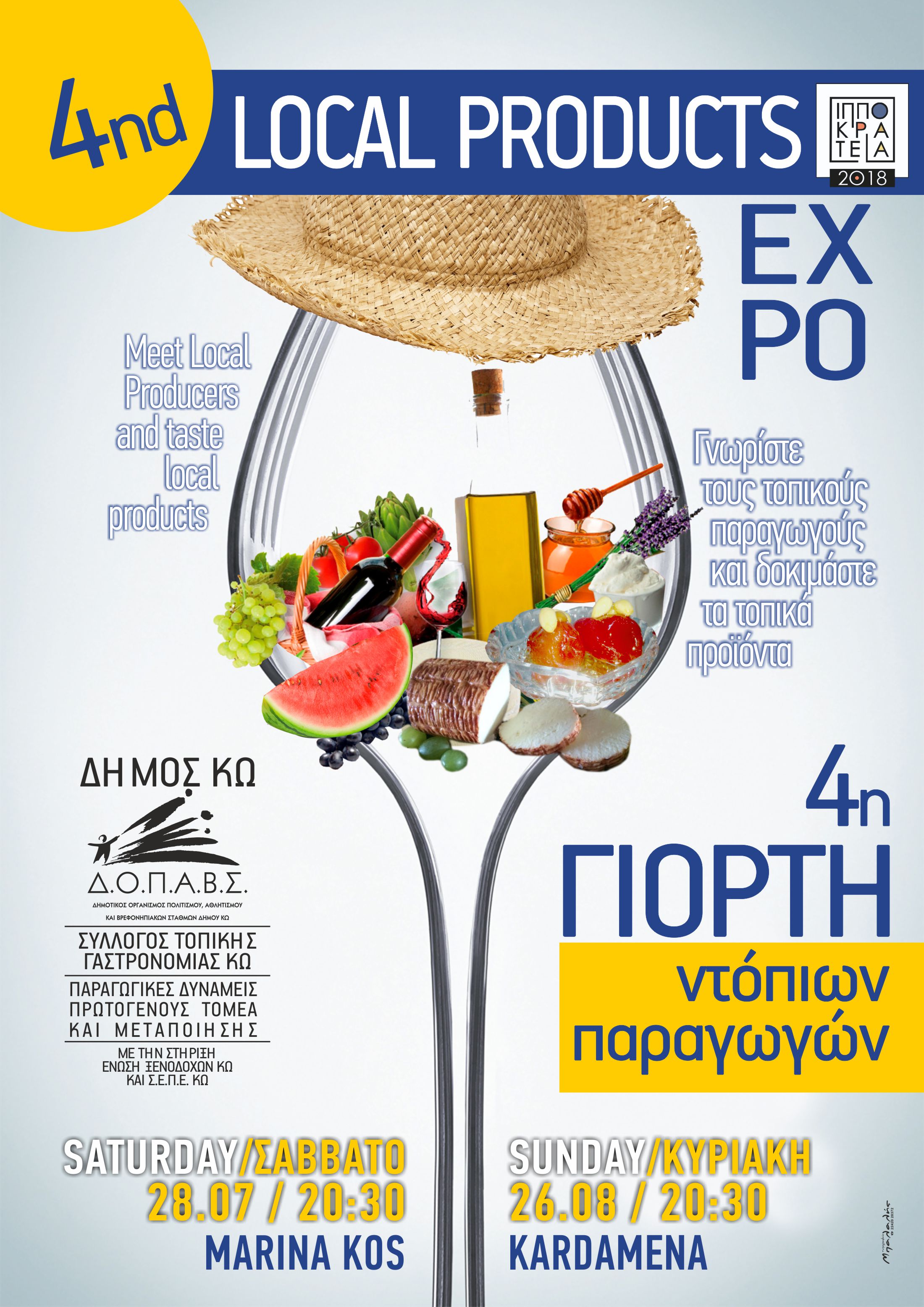 Η 4η Γιορτή Γαστρονομίας και Τοπικών Παραδοσιακών Προϊόντων διοργανώνεται από το Δήμο Κω, τον Σύλλογο Τοπικής Γαστρονομίας «ΑΣΚΛΗΠΙΟΣ» και τελεί υπό την αιγίδα της Γαστρονομικής Περιφέρειας Νοτίου Αιγαίου 2019.