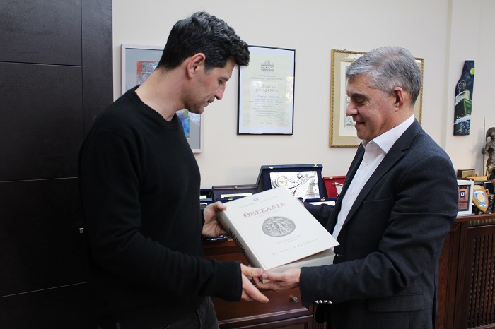 Ο κ. Αγοραστός του ανέλυσε τις πρωτοβουλίες που προτίθεται να λάβει η Περιφέρεια Θεσσαλίας στο πλαίσιο του βραβείου Επιχειρηματικής Περιφέρειας της Ευρώπης 2019 που έλαβε πρόσφατα, αλλά και την πλήρη αξιοποίηση χρηματοδοτικών εργαλείων για την ανάπτυξη της υγιούς επιχειρηματικότητας και της Καινοτομίας. Λίγο πριν αναχωρήσει για την Αθήνα ο γνωστός καλλιτέχνης δέχθηκε με χαρά τα αναμνηστικά που του πρόσφερε ο κ. Αγοραστός, δείχνοντας ιδιαίτερο ενδιαφέρον για το λεύκωμα για την «Θεσσαλία της Ιστορίας και του Πολιτισμού».