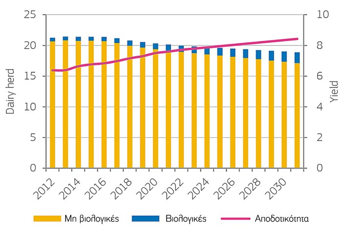 (εκατ. μονάδες) & αποδόσεις (τον./αγελάδα)