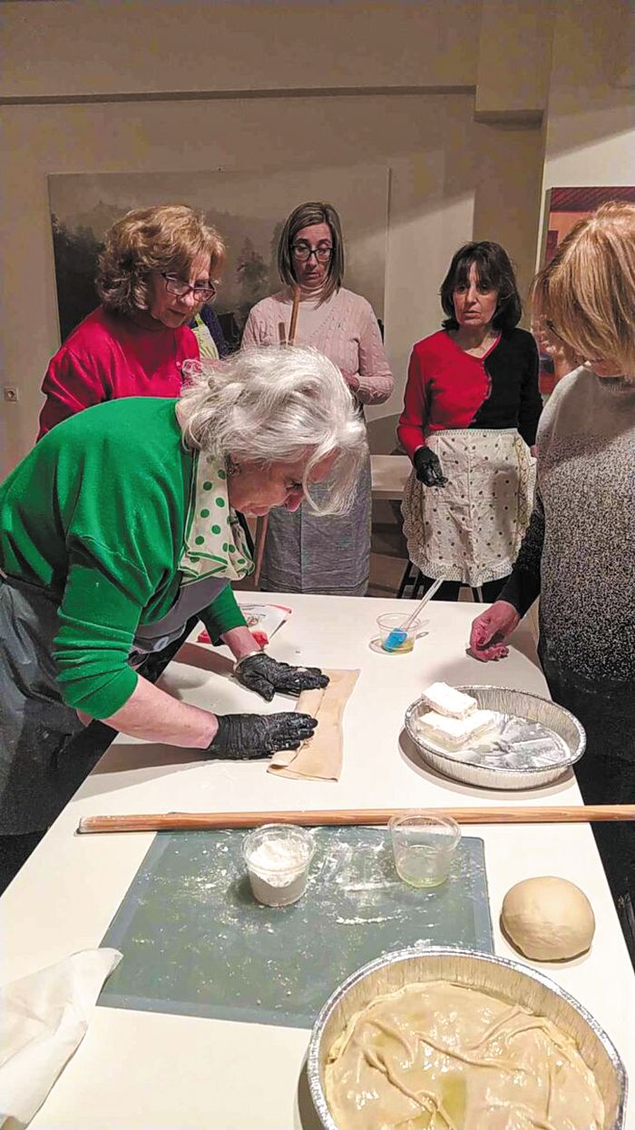 Στο βιωματικό εργαστήριο, οι συμμετέχοντες παρασκεύασαν τη θεσσαλική πίτα υπό την καθοδήγηση της Αριστέας Μπέσιου, παλαιού μέλους του συλλόγου, και της Ειρήνης Κόκκα, οι οποίες έδειξαν τον τρόπο ανοίγματος φύλλου για την παρασκευή της και μίλησαν για τα μυστικά και την παράδοσή της.