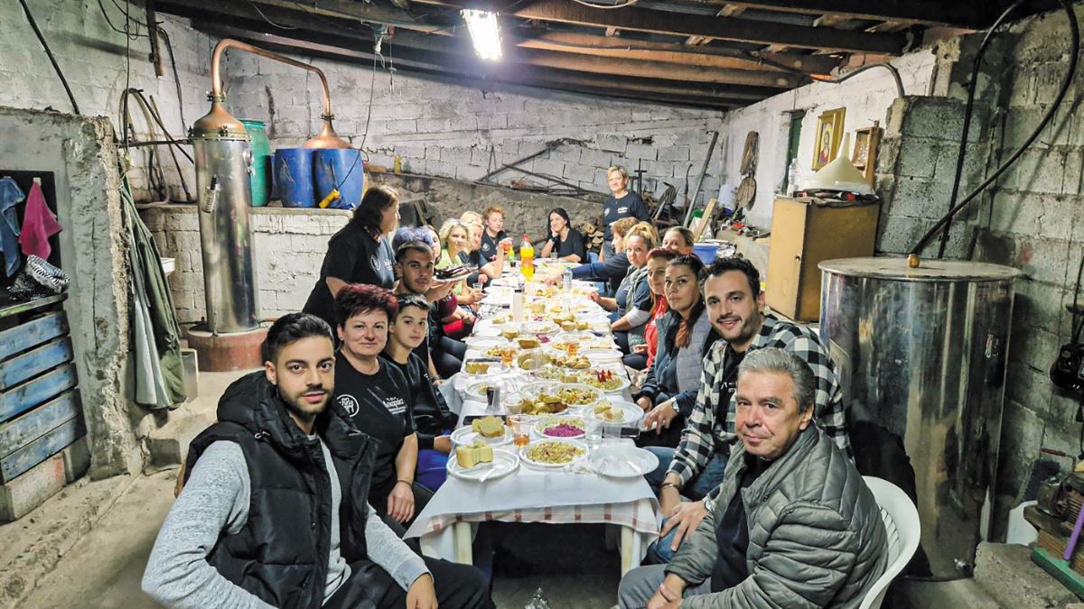 «Εδώ, μέσα στα καζάνια, βράζουμε το τσίπουρο και μαζευόμαστε σε παρέες. Το δοκιμάζουμε, γλεντάμε και περνάμε όμορφα», αναφέρει ο επίτιμος πρόεδρος των Αμβυκούχων Τυρνάβου, Δημήτρης Παπαφίγκος
