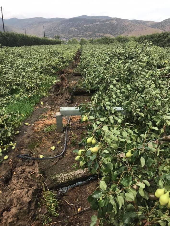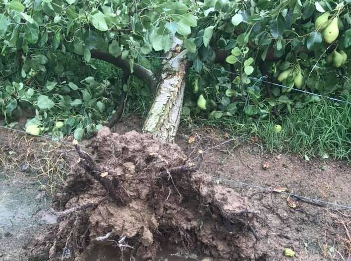 Από το χαλάζι έχουν ήδη προκληθεί ζημιές στις καλλιέργειες, ενώ ο δυνατός άνεμος προκάλεσε πτώσεις δέντρων στην περιοχή.