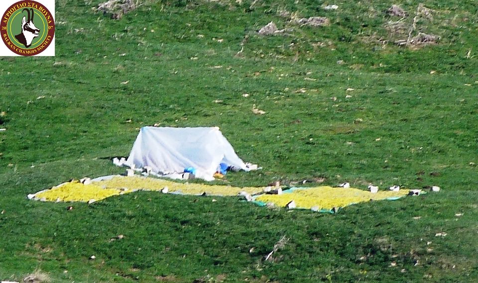 Καταμετρήθηκαν περίπου 20 “εργάτες” διάσπαρτοι στις πλαγιές του όρους να συλλέγουν, αποξηραίνουν ή μεταφέρουν τον “ανθισμένο χρυσό” (Primula veris), γύρω στα 20 υποζύγια (άλογα και ημίονοι) φορτωμένα ή σε αναμονή για να φορτωθούν και τουλάχιστον δύο καταυλισμοί με πρόχειρες σκηνές….. επί του ελληνικού εδάφους.
