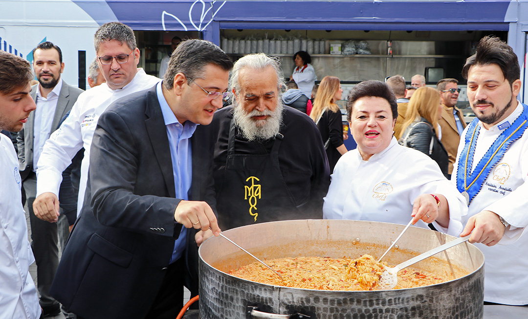 Η ανάδειξη αυτού του πλούτου γίνεται με συγκεκριμένες πρωτοβουλίες από την Περιφέρεια Κεντρικής Μακεδονίας, καθώς εκτός της Μακεδονικής Κουζίνας έχουμε δημιουργήσει το Καλάθι Αγροτικών Προϊόντων της Περιφέρειας Κεντρικής Μακεδονίας, την Αγροδιατροφική Σύμπραξη και το Ειδικό Τμήμα Προβολής Αγροτικών Προϊόντων, ενώ καθιερώσαμε και το ειδικό σήμα ποιότητας ‘Προϊόντα Μακεδονικής Γης’. Η Περιφέρεια Κεντρικής Μακεδονίας θα συνεχίσει με ακόμα μεγαλύτερη ένταση να προβάλει σε όλο τον κόσμο, σε κάθε μία από τις 70 Διεθνείς Εκθέσεις που συμμετέχουμε κάθε χρόνο, τον τόπο μας, τον τουρισμό μας, τον πολιτισμό μας, τη Μακεδονική Κουζίνα, τα μακεδονικά προϊόντα, γιατί μακεδονικά προϊόντα, σημαίνει αποκλειστικά και μόνο ελληνικά προϊόντα», τόνισε ο κ. Τζιτζικώστας.