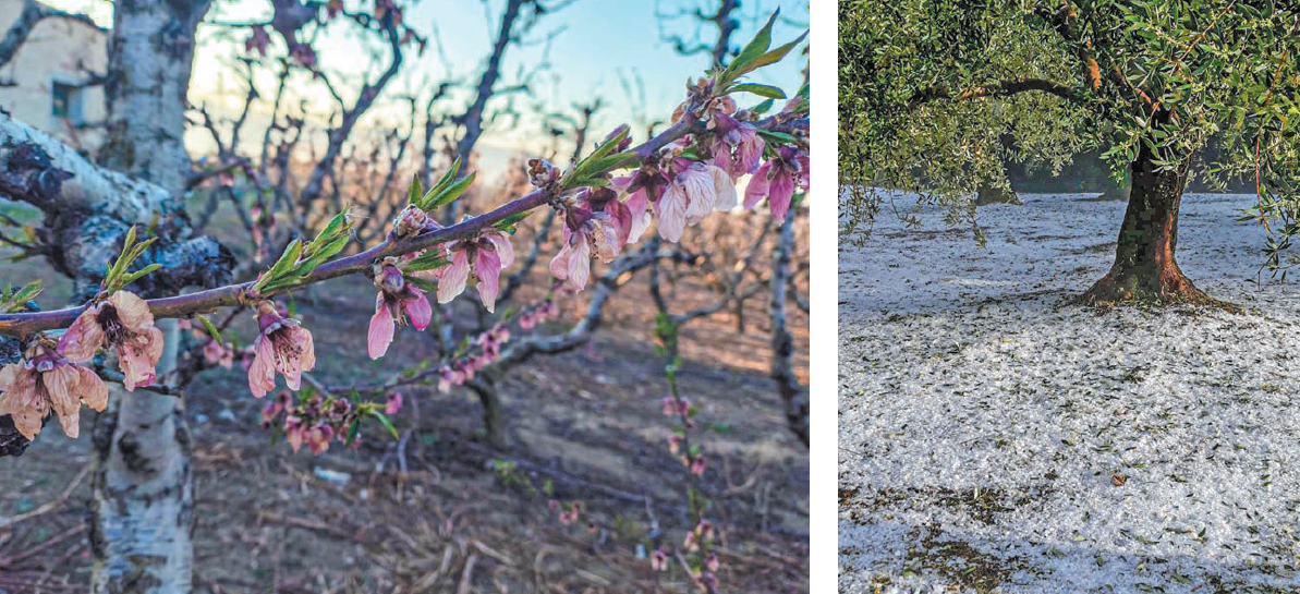 Όπως εξηγεί στην «ΥΧ» ο πρόεδρος του Αγροτικού Συνεταιρισμού Αρχαίας Ωλένειας Αιτωλοακαρνανίας «Stamna Olives», Γιώργος Μίμης, η χαλαζόπτωση επηρέασε την ανθοταξία των ελαιόδεντρων. «Η Ομάδα Παραγωγών της ελιάς Καλαμών έχει χάσει το 30% με 40% της παραγωγής της από αυτό και μόνο το στάδιο που βρίσκεται η καλλιέργεια. Ολοκληρωτική καταστροφή υπέστησαν τα ακτινίδια που καλλιεργούνται στην περιοχή, γεγονός πρωτόγνωρο ακόμα και για τον επιθεωρητή του ΕΛΓΑ, ο οποίος δεν είχε ξαναδεί τέτοια καταστροφή», τονίζει ο κ. Μίμης.