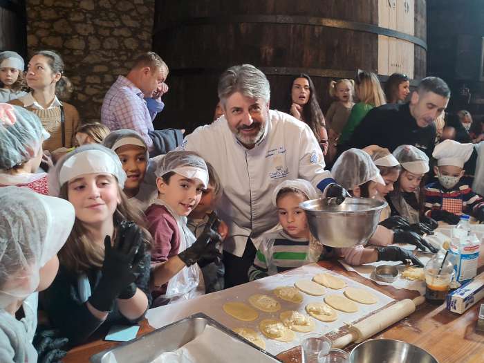 Περισσότερα από 150 παιδάκια όλων των ηλικιών αλευρώθηκαν, έπλασαν ζυμαράκια, έφτιαξαν μελομακάρονα, στριφογύρισαν τρουφάκια σοκολατένια στις μικρές τους παλάμες, άπλωσαν φύλλο και το γέμισαν με ντόπιο τυρί κι ύστερα, τα πρόσφεραν στους γονείς τους και τους πάμπολλους φίλους που γέμισαν ασφυκτικά το Μουσείο Οίνου κατά τη διάρκεια της Χριστουγεννιάτικης εκδήλωσης του Συνεταιρισμού της Σάμου, την Κυριακή 18 Δεκεμβρίου 2022.