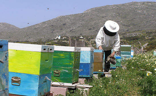 Μέλι, πρόπολη, βασιλικό πολτό και φυσικά καλλυντικά στην Αμοργό φτιάχνει ο μελισσοκόμος, Παναγιώτης Μαρούλης.