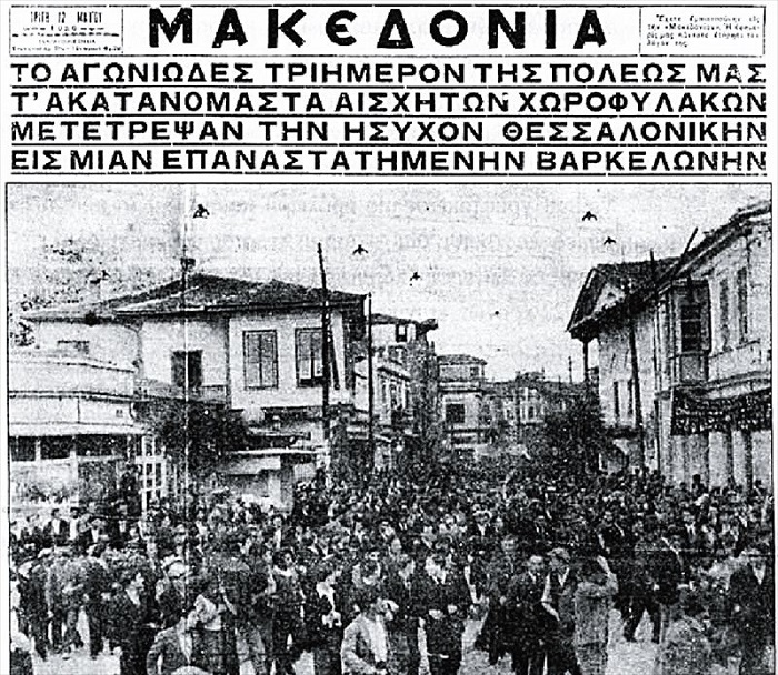 «Μέρα Μαγιού μου μίσεψες, μέρα Μαγιού σε χάνω, άνοιξη γιε, που αγάπαγες κι ανέβαινες απάνω». Ο πρώτος νεκρός, τον Μάη του 1936 στη Θεσσαλονίκη, ήταν ο 25χρονος αυτοκινητιστής, Τάσος Τούσης, από το Ασβεστοχώρι, που συμμετείχε στις εργατικές κινητοποιήσεις που ξεκίνησαν με την απεργία των καπνεργατών. Η τότε νεοδιορισμένη κυβέρνηση Μεταξά, που σε λίγους μήνες θα κατέλυε τη Δημοκρατία, διέταξε τη χωροφυλακή να ρίξει στο ψαχνό, με αποτέλεσμα τον θάνατο 12 εργατών. Από το φωτορεπορτάζ της εποχής, προέκυψε η φωτογραφία της μάνας του Τάσου Τούση, που θρηνεί τον νεκρό της γιο καταμεσής του δρόμου, και από αυτή την εικόνα ο Γιάννης Ρίτσος, εμπνεύστηκε, την ποιητική του συλλογή, «Επιτάφιος». Τα ποιήματα του Ρίτσου, που θα γίνονταν πολύ αργότερα τραγούδια από τον Μίκη Θεοδωράκη, τα έκαψε το καθεστώς του Μεταξά μπροστά στους στύλους του Ολυμπίου Διός. Αλλά, καίγεται ο πόθος για ελευθερία και δικαιοσύνη;