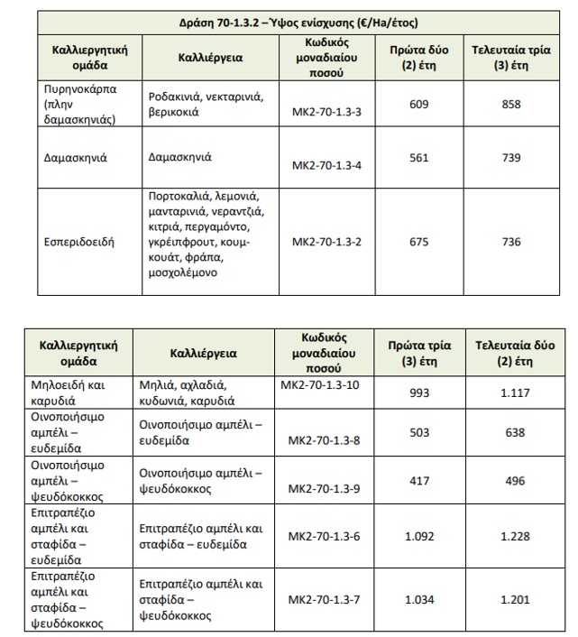 Σύμφωνα με το νέο θεσμικό πλαίσιο τα ποσά ενίσχυσης έχουν ως εξής: