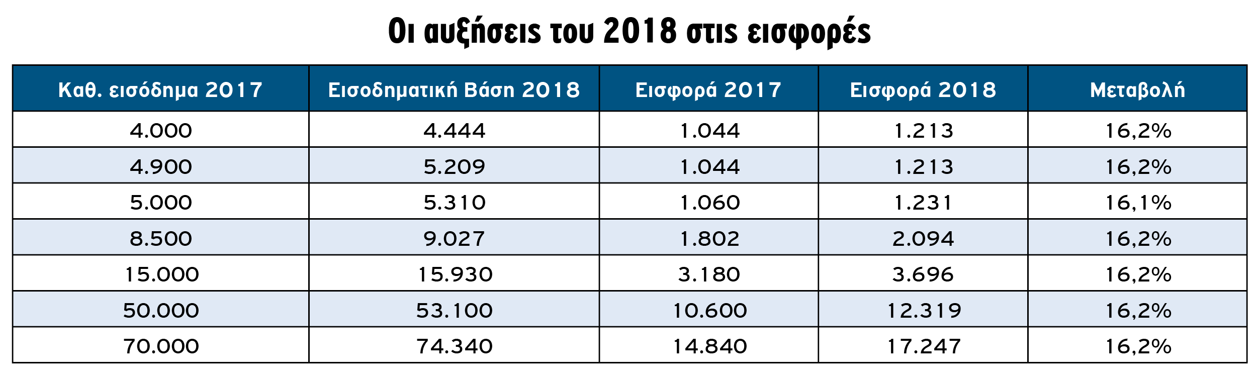 Θ Η µεγάλη πλειοψηφία των αγροτών θα «δει» µια αύξηση της τάξης του 16,2% στις εισφορές που θα κληθεί να καταβάλει το 2018. Η αρχή θα γίνει από τον Φεβρουάριο, µήνα κατά τον οποίο θα αναρτηθούν τα πρώτα ειδοποιητήρια του νέου έτους (Ιανουαρίου 2018). Ο υπολογισµός των εισφορών θα γίνει βάσει των εισοδηµάτων του 2016 και, αφού δηλωθούν και εκκαθαριστούν τα εισοδήµατα της περυσινής χρονιάς, θα ακολουθήσει συµψηφισµός µέχρι τα τέλη του 2018.