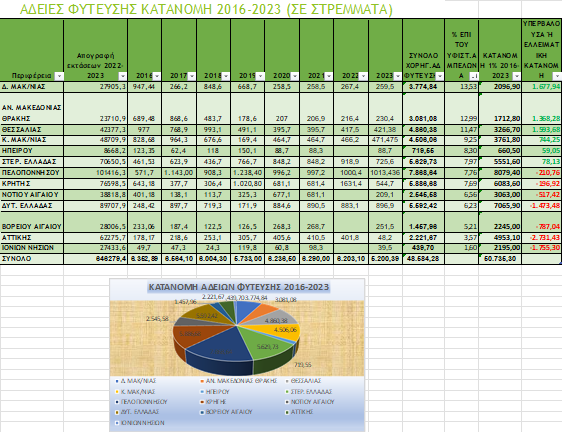 Από το 2016 έως το 2023 στη χώρα μας έχουν χορηγηθεί 48.584,28 στρέμματα μέσω νέων Αδειών Φύτευσης, παραμένει όμως μέχρι σήμερα άγνωστο, το ποσοστό πραγματικών φυτεύσεων (εκτός του 2016 ποσοστό που ανερχόταν στο 61% περίπου), λαμβανομένου υπόψιν και του ότι η υποχρέωση φύτευσης του αμπελώνα μπορεί να πραγματοποιηθεί έως και τρία χρόνια μετά τη χορήγηση της Άδειας Φύτευσης (με εξαίρεση τα έτη της πανδημίας).