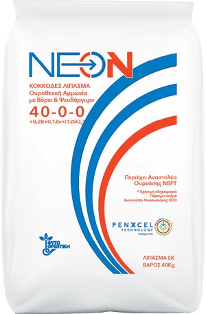 Η σειρά NEON ενσωματώνει την καινοτόμο τεχνολογία PENXCEL που αποτελεί την τελευταία εξέλιξη προϊόντων με παρεμποδιστές Αζώτου. Τα προϊόντα ΝΕΟΝ βασίζονται τόσο σε αναστολέα ουρεάσης (NBPT) για αποφυγή απωλειών Αζώτου σε μορφή αέριας αμμωνίας, όσο και σε αναστολέα νιτροποίησης (DCD) για μείωση των απωλειών Αζώτου λόγω έκπλυσης. Έτσι, με την εφαρμογή των λιπασμάτων NEON, εξασφαλίζουμε πολλαπλά καλλιεργητικά οφέλη: