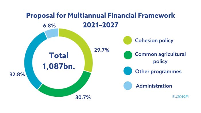 Η πρόταση της προεδρίας προβλέπει για το νέο ΠΔΠ προϋπολογισμό ύψους 1,087 τρισ. ευρώ για την επταετή περίοδο, που αντιστοιχεί στο 1,07% του ακαθάριστου εθνικού εισοδήματος των κρατών-μελών της ΕΕ. Ο προτεινόμενος προϋπολογισμός, σύμφωνα με την προεδρία, επικεντρώνεται στις νέες προτεραιότητες της ΕΕ, όπως η δράση για το κλίμα, η έρευνα και η καινοτομία και η διαχείριση της μετανάστευσης.
