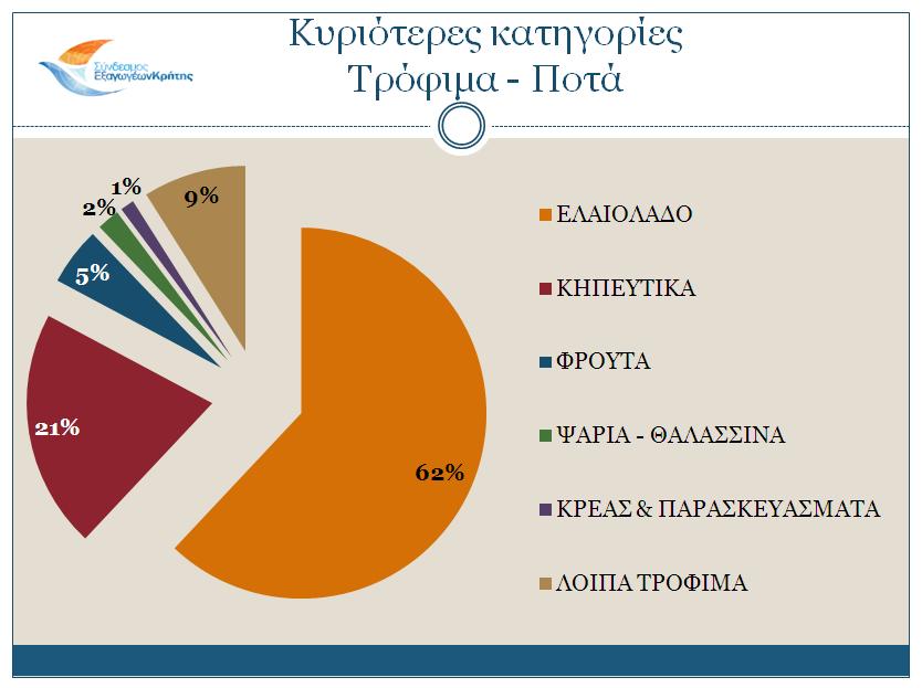 Από τα προϊόντα εκτός αγροδιατροφικού τομέα, σημαντικές είναι οι εξαγωγές πλαστικών μεμβρανών και φύλλων, ειδών συσκευασίας από πλαστικές ύλες, διχτυών αγροτικής χρήσης και χρωστικών υλών. Αναφορικά με τις χώρες όπου αποστέλλονται τα Κρητικά προϊόντα, πρώτη έρχεται η Ιταλία, με μερίδιο 18,7%, ακολουθεί η Γερμανία με μερίδιο 18,5%, τρίτη η Γαλλία, με μερίδιο 5,7%, τέταρτη η Ολλανδία, με μερίδιο 5,1% και πέμπτη η Ισπανία, με μερίδιο 5%. Τη δεκάδα των σημαντικότερων αγοραστών των Κρητικών προϊόντων συμπληρώνουν το Ηνωμένο Βασίλειο (μερίδιο 4,3%), οι Η.Π.Α. (4%), η Πολωνία (3,8%), η Αυστρία (3,8%) και η Κύπρος (3,6%).