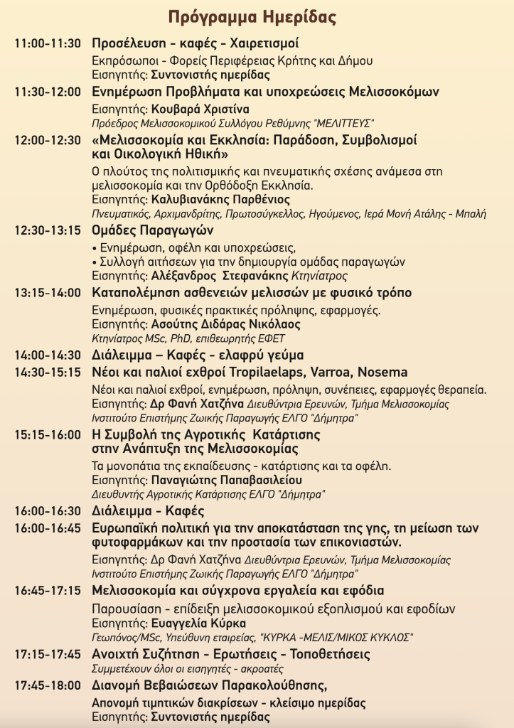 Ο Μελισσοκομικός Σύλλογος Ρεθύμνης «ΜΕΛΙΤΤΕΥΣ» προσκαλεί τα μέλη του αλλά και κάθε ενδιαφερόμενο στην ημερίδα με θέμα: