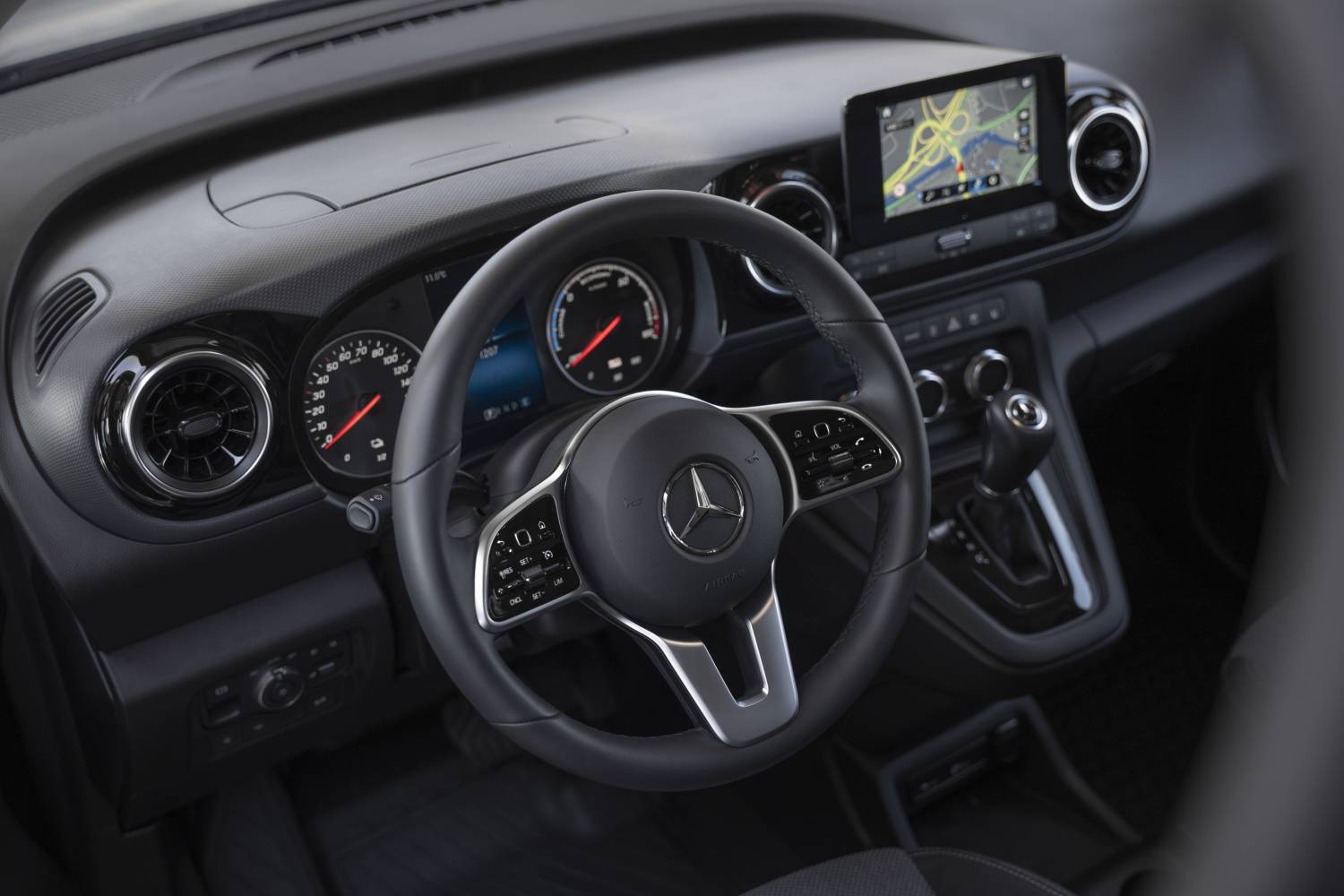 Ελκυστικό πακέτο MBUX και πανίσχυρο σύστημα κίνησης: Το προαιρετικό σύστημα πολυμέσων MBUX (Mercedes-Benz User Experience) προσφέρει διαισθητικό χειρισμό μέσω μιας οθόνης αφής επτά ιντσών ή πλήκτρων ελέγχου αφής στο τιμόνι. Περιλαμβάνει επίσης ενσωμάτωση smartphone μέσω Apple CarPlay και AndroidAuto, λειτουργία ανοικτής ακρόασης μέσω σύνδεσης Bluetooth και ψηφιακό ραδιόφωνο (DAB και DAB+). Το MBUX με πλοήγηση προσφέρει επιπλέον γρήγορη πλοήγηση από σκληρό δίσκο, η οποία είναι ιδιαίτερα εξυπηρετική και πρακτική χάρη στη Φωνητική υποβοήθηση «Hey Mercedes». Οι υπόλοιπες λειτουργίες infotainment ελέγχονται επίσης με τον ίδιο τρόπο.