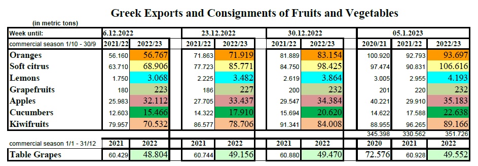 Οι εξαγωγές αγγουριών 1/9-5/1/23 ανέρχονται σε 22.638.τ. έναντι 17.588.την περίοδο 2021 καταγράφοντας άνοδο 28,7%