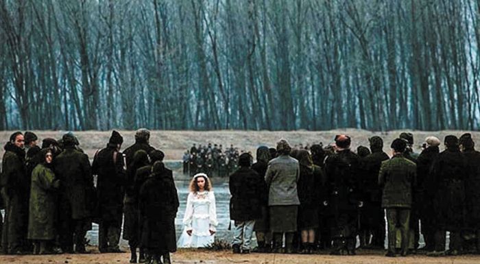 Στην αξέχαστη σκηνή της υπαίθριας γαμήλιας τελετής, ένα ορμητικό συνοριακό ποτάμι χωρίζει την πομπή που συνοδεύει τη μετανάστρια νύφη από το πλήθος που ακολουθεί τον ομοεθνή της γαμπρό, ο οποίος δεν έχει περάσει τα σύνορα και βρίσκεται αποκλεισμένος στην αντίπερα όχθη.