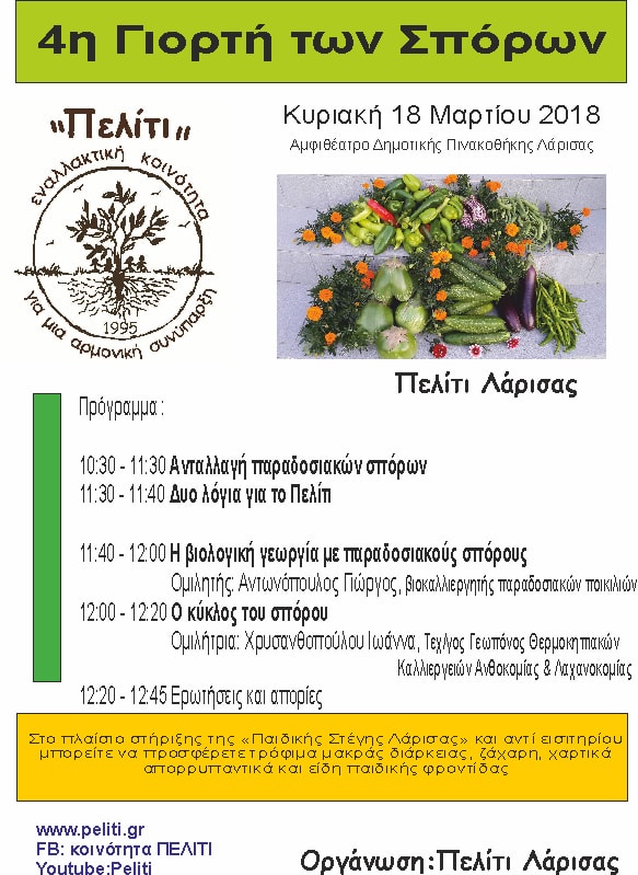 Για μια ακόμη χρονιά η προετοιμασία για την Γιορτή των Σπόρων του Πελίτι ξεκινάει με τους καλύτερους οιωνούς και τους θερμότερους υποστηρικτές από όλο τον κόσμο. Η 18η Γιορτή Σπόρων του Πελίτι και η 2η Ολυμπιακή Γιορτή Σπόρων θα λάβουν χώρα από τις 11 ως τις 14 Απριλίου 2018 στη γη του Πελίτι στο Μεσοχώρι Παρανεστίου Δράμας και παράλληλα με την προετοιμασία των ανθρώπων του Πελίτι τα μηνύματα από όλο τον κόσμο ξεκίνησαν.