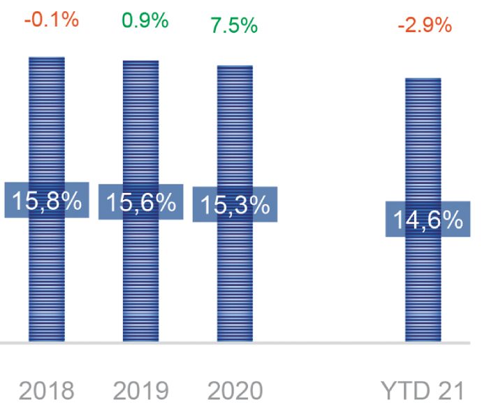 Παρόμοια εικόνα αναδύεται και από τα στοιχεία που δημοσιοποίησε μέσα στην εβδομάδα η IRI Ηellas και τα οποία αποτυπώνουν ανατιμήσεις 2,1% στα FMCGs στο δεκάμηνο Ιανουαρίου – Οκτωβρίου 2021. Μάλιστα, οι ανατιμήσεις στα τρόφιμα ξεπερνούν αυτό το μέσο όρο και φτάνουν το 2,5%. Σύμφωνα με την IRI, η αύξηση των τιμών ανά μονάδα είναι «υπεύθυνη» για την αύξηση των πωλήσεων σε ποσοστό 2,2% στο δεκάμηνο τη στιγμή που η άνοδος στους όγκους πωλήσεων δεν ξεπερνά το 0,1%.