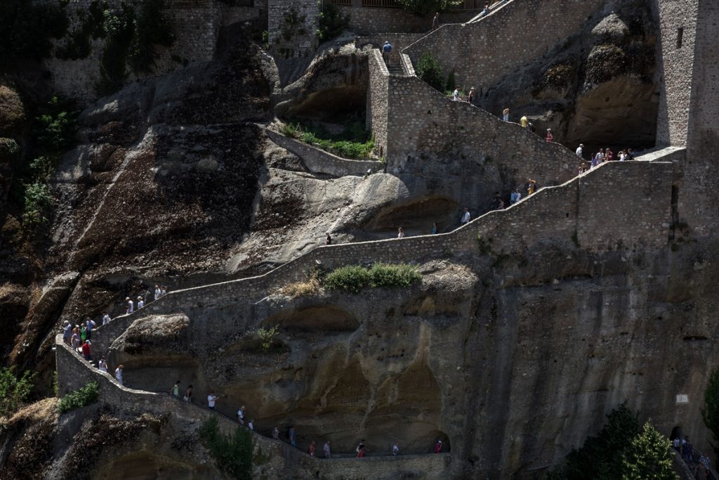 Το National Geographic γυρνά τον χρόνο πίσω και σημειώνει ότι για αιώνες, ο μόνος τρόπος να φτάσουν οι ταξιδιώτες στη Μονή Ρουσάνου και τα άλλα μοναστήρια των Μετεώρων ήταν να αναρριχηθούν σε αναδιπλούμενες σκάλες ή να τους σηκώσουν σε καλάθι.