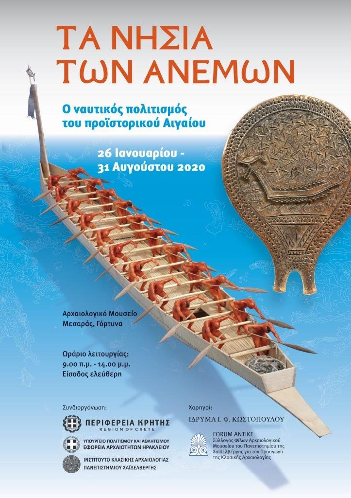 Η Εφορεία Αρχαιοτήτων Ηρακλείου και το Ινστιτούτο Κλασικής Αρχαιολογίας του Πανεπιστημίου της Χαϊδελβέργης σε συνεργασία με την Περιφέρεια Κρήτης διοργανώνουν από τις 26 Ιανουαρίου έως και τις 31 Αυγούστου 2020 την περιοδική έκθεση «Τα νησιά των ανέμων. Ο θαλάσσιος πολιτισμός του Προϊστορικού Αιγαίου» στο νεόδμητο Αρχαιολογικό Μουσείο Μεσαράς, Γόρτυνα (οδικός κόμβος Αμπελούζου).