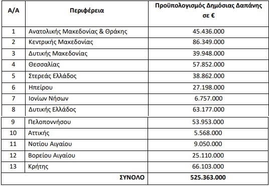 Σύμφωνα με την απόφαση ο συνολικός προϋπολογισμός της διαθέσιμης δημόσιας δαπάνης ανέρχεται σε 525.363.000 ευρώ.