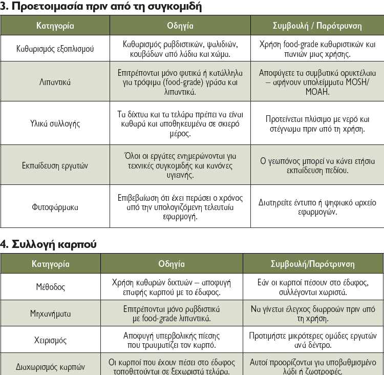 Οδηγίες καθαρού τρόπου συγκομιδής ελαιοκάρπου