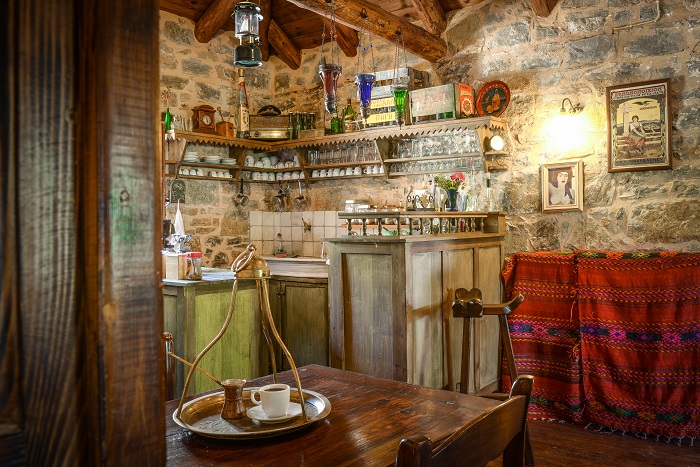 Για τη γαστρονομική… δράση υπάρχουν η κουζίνα, ο ξυλόφουρνος, το τυροκομείο, οι παραστιές, το ρακοκάζανο, το πατητήρι και φυσικά το εστιατόριο, με παραδοσιακά έπιπλα και σκεύη, κάτω από τον προστάτη-δρυ.