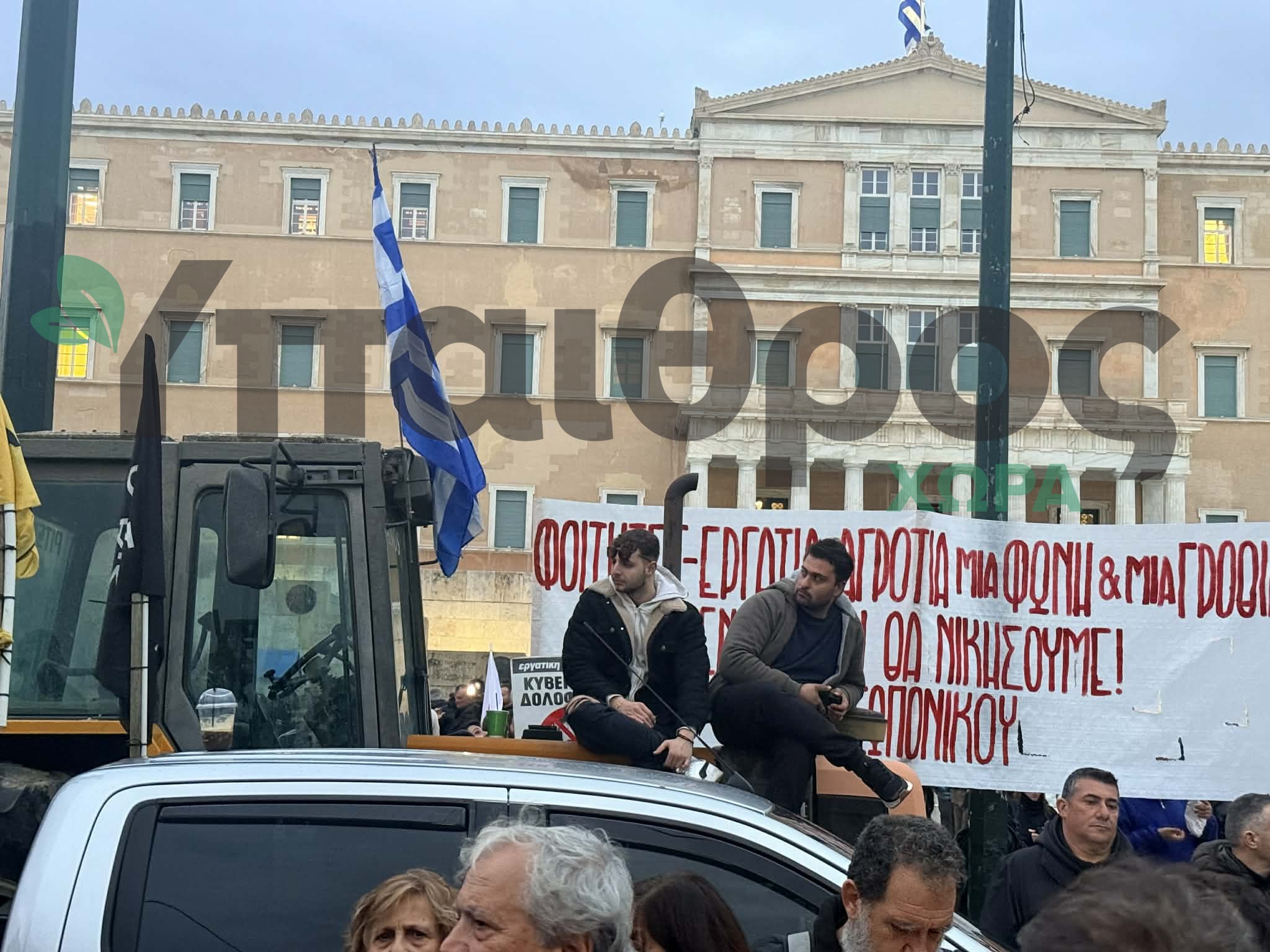 Στο Σύνταγμα βρίσκονται επίσης σωματεία εργαζομένων, φοιτητικοί σύλλογοι και ομοσπονδίες, εκφράζοντας τη συμπαράστασή τους στους διαμαρτυρόμενους αγρότες.