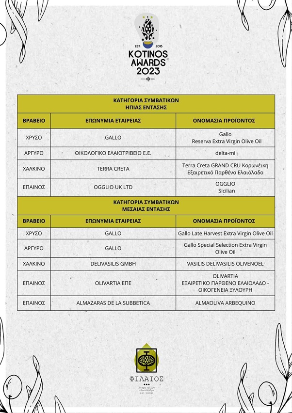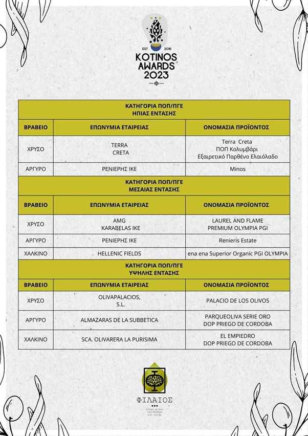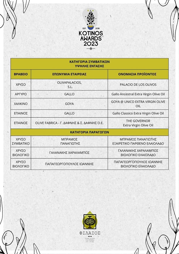Ολοκληρώθηκε ο διεθνής διαγωνισμός ελαιολάδου IOOC KOTINOS 2023 – Αναλυτικά οι νικητές