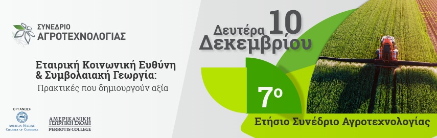 Με μεγάλη επιτυχία πραγματοποιήθηκε από το Ελληνο-Αμερικανικό Εμπορικό Επιμελητήριο σε συνεργασία με την Επιτροπή Αγροτεχνολογίας του το 7ο Συνέδριο Αγροτεχνολογίας με τίτλο: “Εταιρική Κοινωνική Ευθύνη & Συμβολαιακή Γεωργία: Πρακτικές που δημιουργούν αξία”, το οποίο έλαβε χώρα τη Δευτέρα 10 Δεκεμβρίου στις εγκαταστάσεις του Perrotis College της Αμερικανικής Γεωργικής Σχολής.