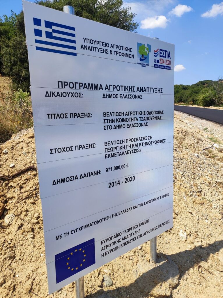 Ένα σημαντικό έργο για την αγροτική οικονομία της περιοχής των δημοτικών κοινοτήτων Μηλέας και Τσαπουρνιάς ολοκληρώθηκε προ ημερών στο Δήμο Ελασσόνας από την ανάδοχο εταιρεία Solis ΑΤΕ με τίτλο «Βελτίωση Αγροτικής Οδοποιίας στην Κοινότητα Τσαπουρνιάς του Δήμου Ελασσόνας» και προϋπολογισμό 971.000,00 ευρώ συμπ. ΦΠΑ.