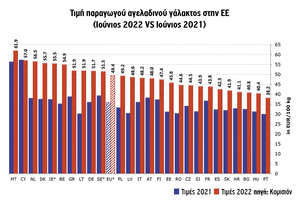Ο Χρήστος Τσομπάνος από τη Θεσσαλονίκη δήλωσε στην «ΥΧ» ότι «οι τιμές αυτή την περίοδο στα συμβόλαια, για τις μονάδες από 120 τόνους γάλα και πάνω μηνιαίως, φτάνουν τα 55 με 57 λεπτά/κιλό. Σε σχέση με τον προηγούμενο μήνα, πληρώθηκα 2 λεπτά παραπάνω. Όμως, η ουσία δεν είναι εκεί, αλλά στο γεγονός ότι οι ζωοτροφές συνεχίζουν και είναι απλησίαστες, ειδικά η σόγια. Αυτή την περίοδο αγοράζουμε ενσίρωμα και οι τιμές έχουν ξεφύγει, το βρίσκουμε 6 λεπτά/κιλό από 4 λεπτά που κόστιζε πέρσι. Προβλέπω ότι την ερχόμενη περίοδο θα δούμε ανησυχητικά μεγάλη μείωση στο γάλα». Ο ίδιος πρόσθεσε ότι οι κτηνοτρόφοι περιμένουν διακαώς την ενίσχυση της πολιτείας για τον κλάδο.