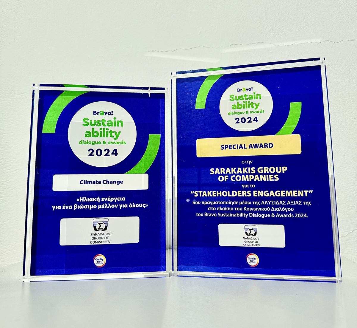 Βραβείο “Περιβάλλον-Climate Change” και Special Award “Stakeholders Engagement” Κοινωνικός Διάλογος στην Αλυσίδα Αξίας κατέκτησε ο Όμιλος Επιχειρήσεων Σαρακάκη στα Bravo Sustainability Dialogue & Awards 2024.